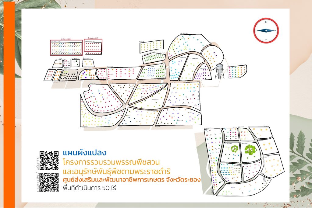 ………….. อนุรักษ์พันธุ์ไม้ผลในพื้นที่โครงการฯ ในพื้นที่ 50 ไร่ โดยแบ่งออกเป็น 38 ส่วนพื้นที่ เก็บรวบรวมพันธุ์ไม้ผล 32 วงศ์